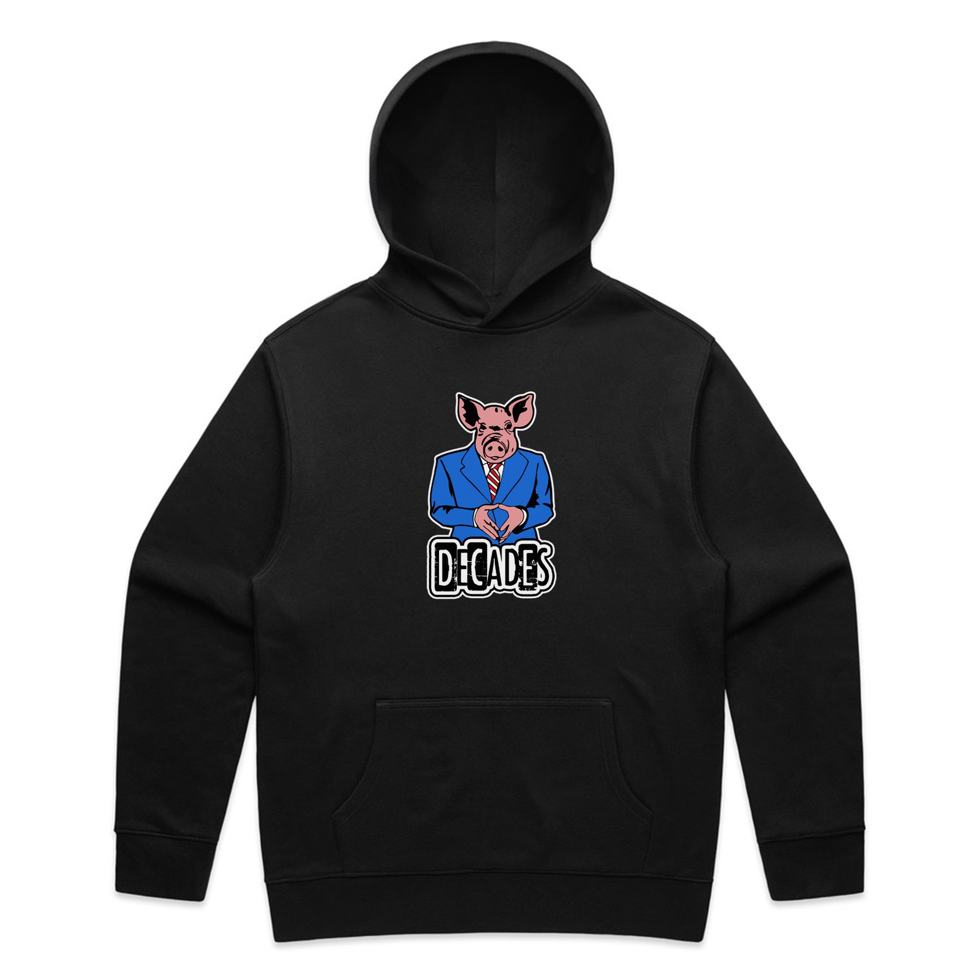 Relaxed fit Mid weight, 9.4 oz 80% cotton 20% recycled polyester fleece Pullover hood, drop shoulder, kangaroo pocket, no drawcord, sleeve cuff ribbing