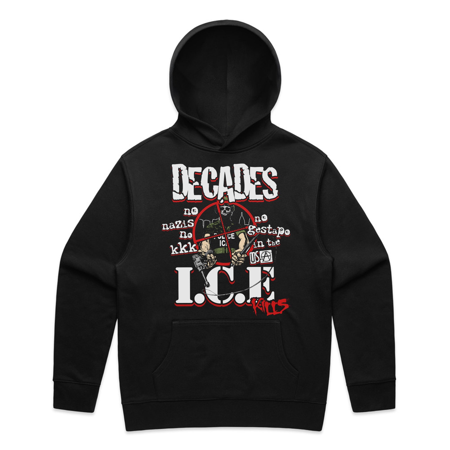 Relaxed fit Mid weight, 9.4 oz 80% cotton 20% recycled polyester fleece Pullover hood, drop shoulder, kangaroo pocket, no drawcord, sleeve cuff ribbing